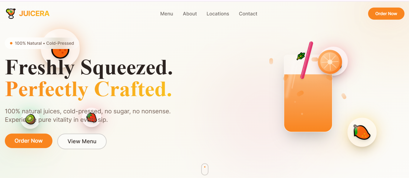 JUICERA is a high-end, one-page landing page designed for a wellness brand focusing on 100% natural, cold-pressed juices. The project highlights a “no-nonsense” approach to health, utilizing a minimalist and modern aesthetic to appeal to health-conscious consumers. The primary goal was to create a fast-loading, visually striking interface that drives conversions through a seamless user experience.