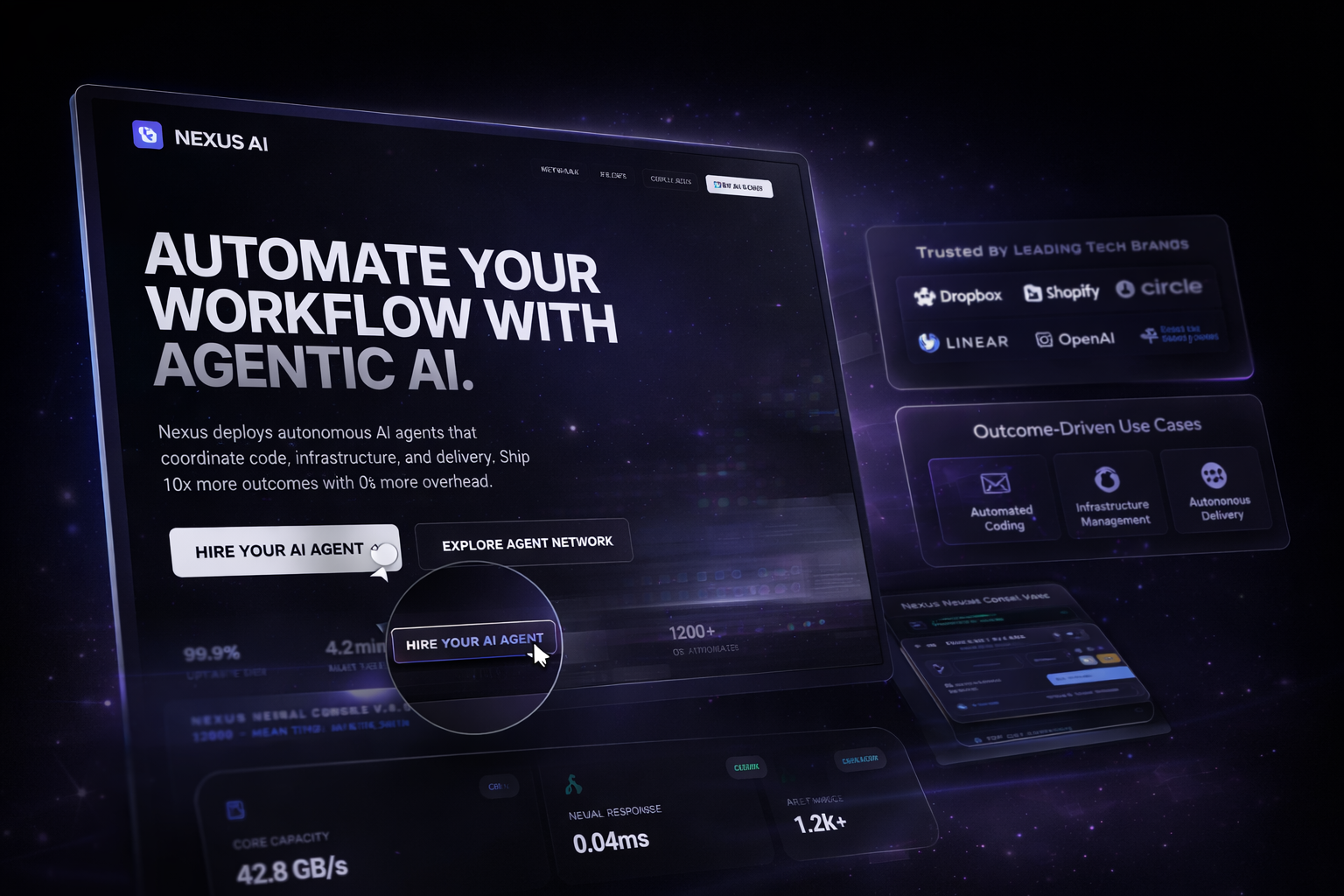 Nexus AI is a premium SaaS landing page designed for modern AI-driven products. The goal was to create a visually powerful and conversion-focused interface that clearly communicates value while maintaining a clean and professional user experience.
